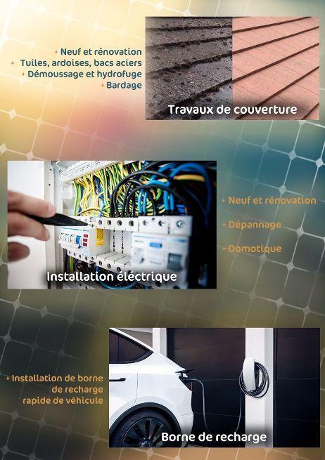 Faites appel à l’entreprise MJM ENERGIES pour la pose et l'entretien de vos panneaux photovoltaïques, réaliser vos travaux d’électricité générale, de couverture et d’installation de bornes de recharge. Zone d’intervention : 100 kms autour de Reims.